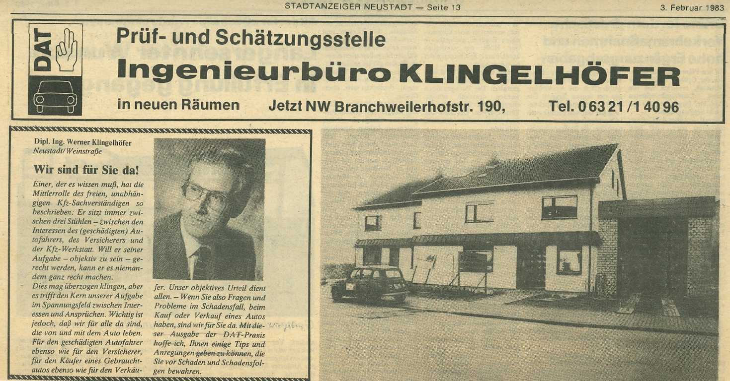 Auch Herr Klingelhöfer wurde Vertragspartner der DAT und zusätzlich der GTÜ (Gesellschaft für Technische Überwachung). Dies markierte den Beginn einer engen und bis heute bestehenden Zusammenarbeit mit der GTÜ.